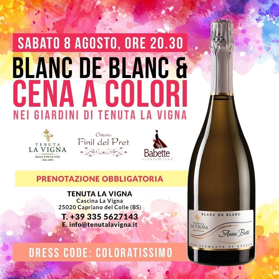 Sabato 8 agosto, alle ore 20.30, “Blanc de Blanc & Cena a Colori” organizzata da Tenuta la Vigna in collaborazione con Finil del Pret e Babette Events & Food.