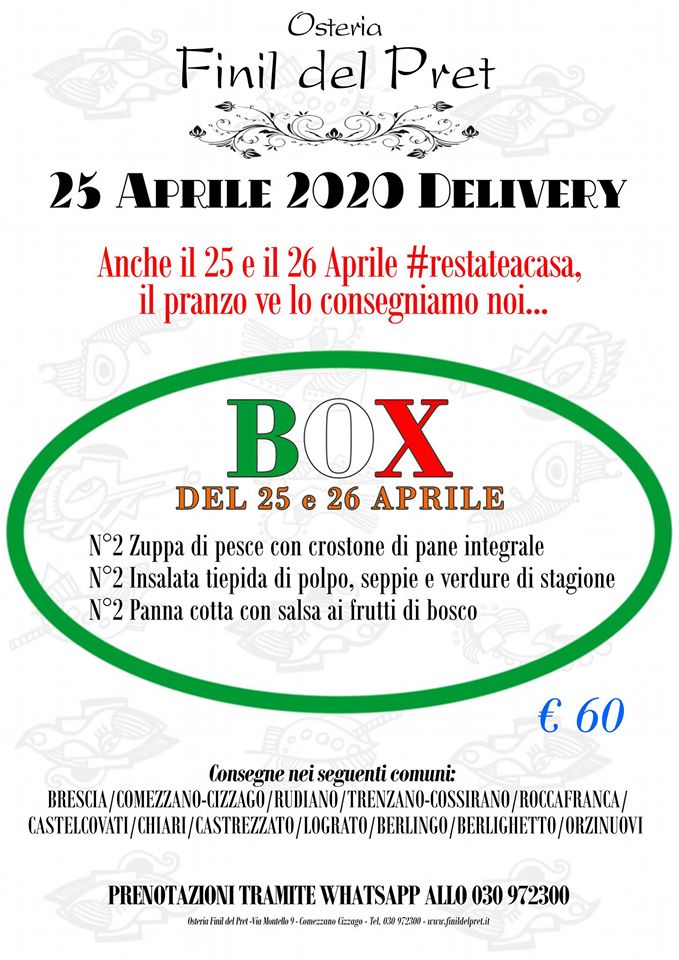 9 MAGGIO 2021 N° 2 Quiche salate alle verdure su fonduta di Stracchino all’Antica delle Valli Orobiche N° 2 Zucchine tonde ripiene N° 2 Lasagnette alle verdure e Rosa Camuna N° 2 Mousse ai 3 Cioccolati Box per 2 persone € 55 Info e prenotazioni 030/972300
